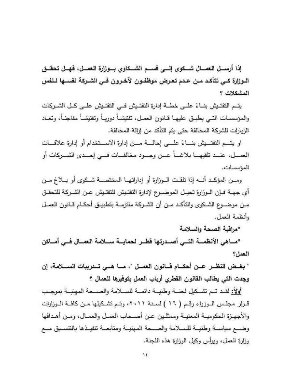 [172] رسالة من وزارة العمل القطرية، 1 نوفمبر/تشرين الثاني 2011، ص 11.