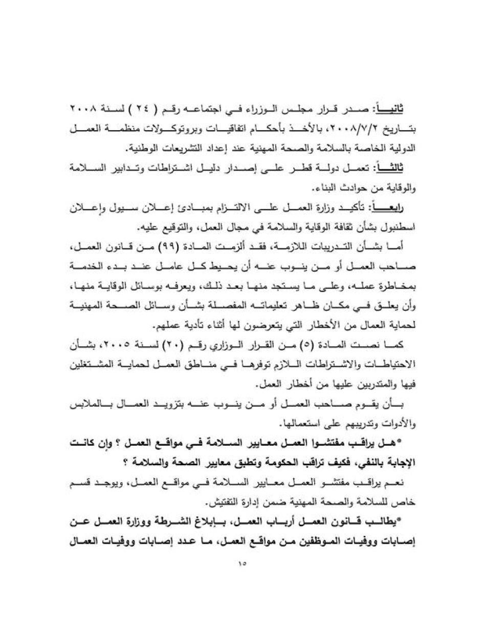 [229] رسالة من وزارة العمل القطرية، 1 نوفمبر/تشرين الثاني 2011، ص 8.