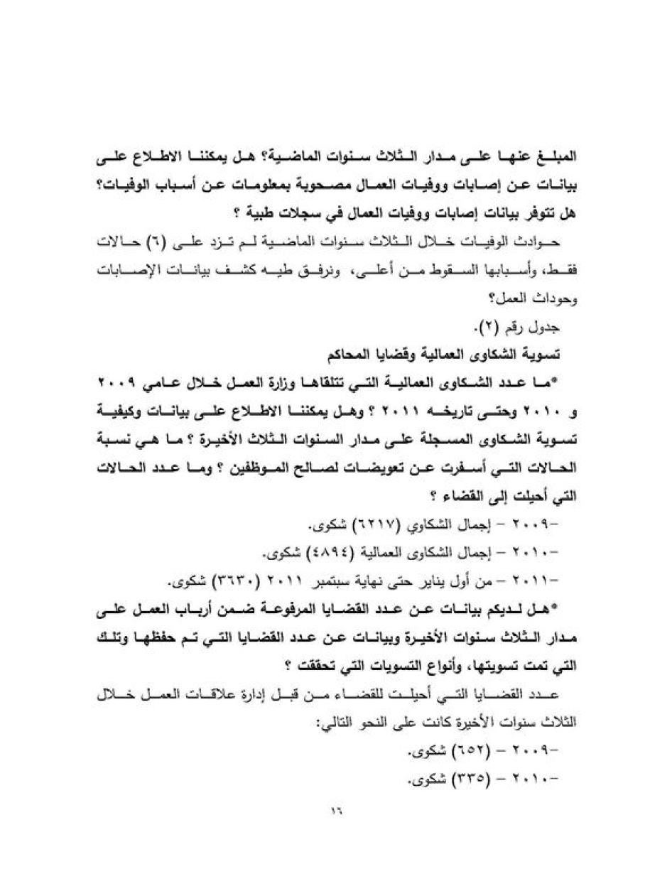 [262] رسالة من وزارة العمل القطرية إلى هيومن رايتس ووتش، 1 نوفمبر/تشرين الثاني 2011. ص 12.