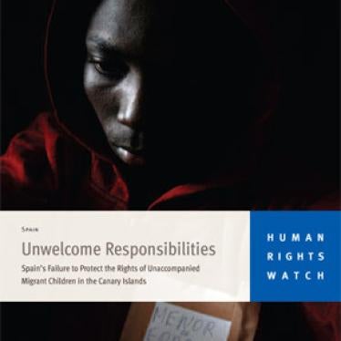 (Madrid, 26. Juli 2007) – Die spanischen Behörden halten unbegleitete Flüchtlingskinder in provisorischen Einrichtungen auf den Kanarischen Inseln fest. Dort sind sie Opfer von Gewalt und Misshandlung, erklärte Human Rights Watch in einem heute veröffentlichten Bericht.