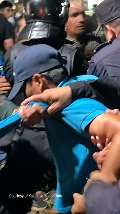 En un video se observa a Pérez y Henríquez hablando tranquilamente con agentes de policía, cuando uno de ellos toma a Henríquez por la mochila y lo aparta, mientras la unidad antidisturbios se aproxima a los manifestantes. Luego, los agentes detienen a Pérez y lo conducen hasta una patrulla policial. Aunque las imágenes muestran que Henríquez, Pérez y otros manifestantes actuaban de forma pacífica, los fiscales sostuvieron que la detención de Pérez era necesaria para evitar el “inevitable” “inicio de acciones agresivas” por parte de los manifestantes, según consta en los documentos judiciales.