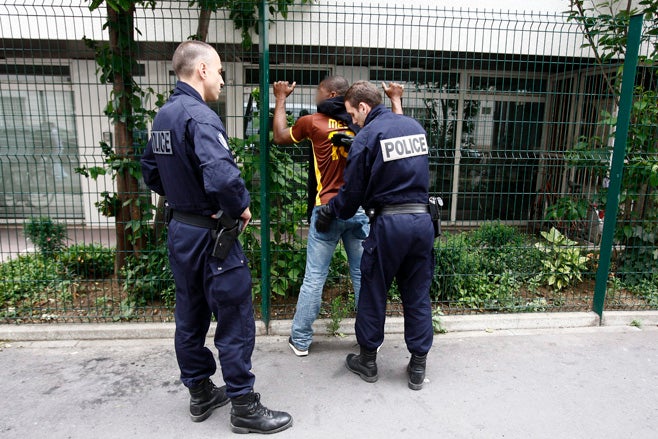 Contrôle d'identité et fouille effectuée sur un jeune homme issu d'une minorité, à Paris, le 6 juin 2011.