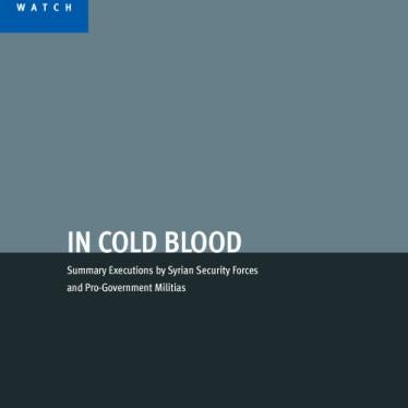 Ce rapport de 25 pages, intitulé « In Cold Blood: Summary Executions by Syrian Security Forces and Pro-Government Militias » (« De sang-froid: Exécutions sommaires commises par les forces de sécurité syriennes et milices pro-gouvernementales »), décrit plus d'une dizaine d'incidents de ce type, ayant fait au moins 101 victimes, survenus depuis la fin de 2011, dont une bonne part en mars 2012. Human Rights Watch a documenté l'implication des forces armées syriennes et des milices pro-gouvernementales chabiha dans des exécutions sommaires et extrajudiciaires dans les gouvernorats d'Idlib et de Homs. Les forces gouvernementales ou pro-gouvernementales ont exécuté non seulement des combattants de l'opposition qu'elles avaient capturés, ou qui avaient cessé de se battre et ne constituaient plus une menace, mais aussi des civils qui, pareillement, ne posaient pas de danger pour les forces de sécurité.