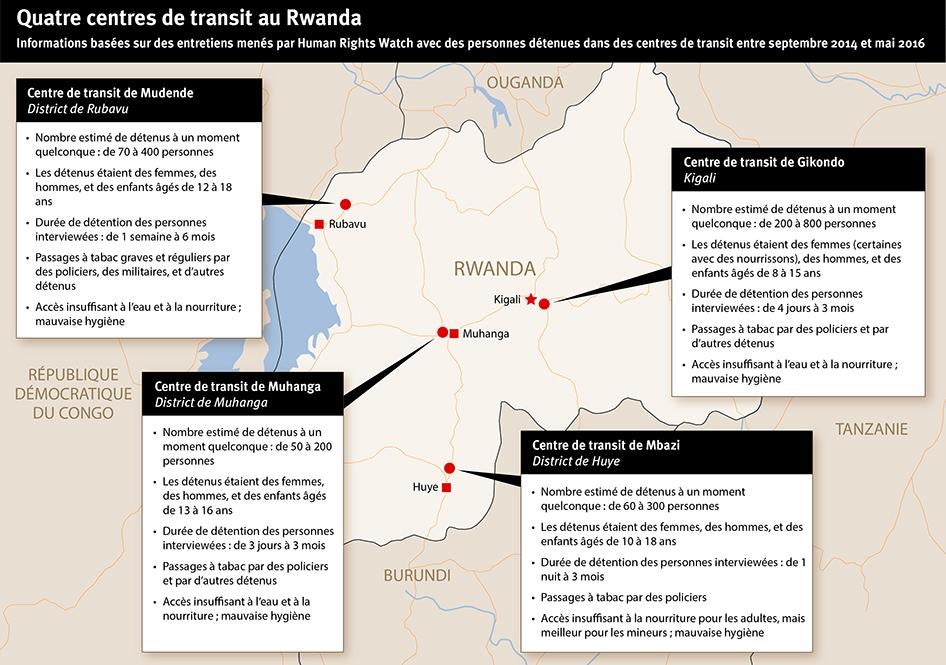 En 2015 et 2016, la Commission nationale des droits de la personne et des membres du parlement rwandais ont confirmé certaines des conclusions de Human Rights Watch et ont approuvé une recommandation pour un cadre juridique actualisé pour tous les « centres de transit ».