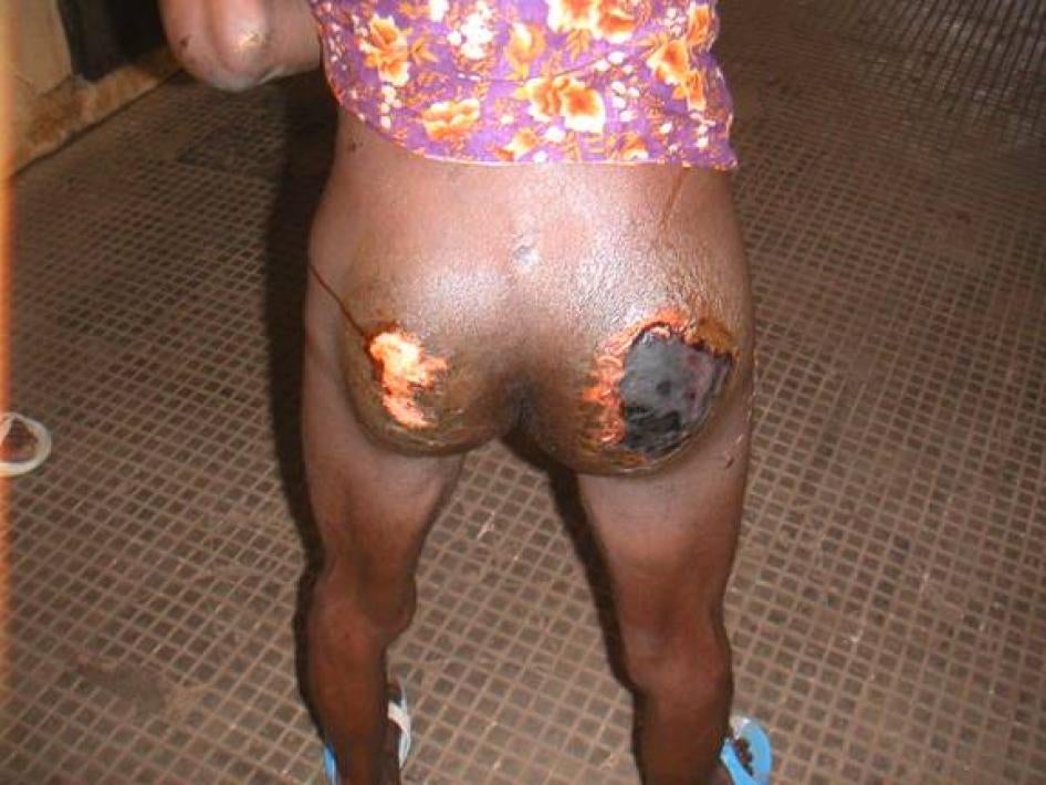 Un prisonnier de la Maison Centrale montre les blessures qui lui auraient été faites en le battant et en le fouettant à diverses reprises sur les fesses lors des interrogatoires de police en juin 2006.