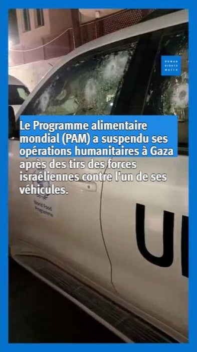 Le Programme alimentaire mondial (PAM), une agence de l’ONU, a suspendu ses opérations humanitaires à Gaza après des tirs des forces israéliennes contre l'un de ses véhicules. Israël devrait protéger les travailleurs humanitaires, et non les mettre en danger.