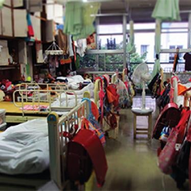 子ども用の寝室(関西地方の児童養護施設)。 10代後半の子どもにも 1人部屋が割り当てられていない。自分だけの場所がない状態だ。 © 2012 Private/ヒューマン・ライツ・ウォッチ