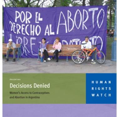 Women in Argentina face arbitrary and discriminatory restrictions on their reproductive decisions and access to contraceptives and abortion. As a result, many women must choose between an unwanted or dangerous pregnancy and birth or an illegal and unsafe abortion that might seriously injure or even kill them. Approximately half a million illegal abortions occur every year in Argentina, according to the health ministry, representing 40 percent of all pregnancies. This extraordinarily high proportion of pregnancies ending in abortions is a graphic testament to women's lack of access to effective family planning information and services. Unsafe abortions have constituted the leading cause of maternal mortality in the country for decades. The tragic personal consequences of Argentina's restrictions on women's reproductive rights are documented in Human Rights Watch's report, "Decisions Denied: Women's Access to Contraceptives and Abortion in Argentina," which this fact-sheet summarizes.