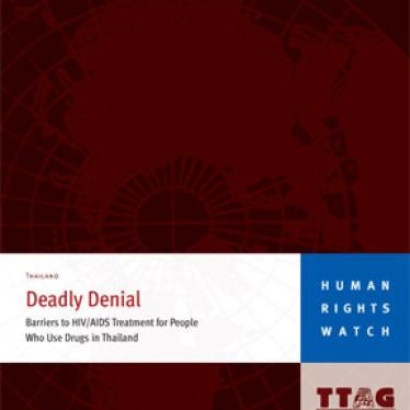 The 57-page report, "Deadly Denial: Barriers to HIV/AIDS Treatment for People Who Use Drugs in Thailand", found that routine police harassment and arrest – as well as the lasting effects of former Prime Minister Thaksin Shinawatra’s 2003 drug war – keeps drug users from receiving lifesaving HIV information and services that Thailand has pledged to provide. The report also documents how drug users face discrimination from health care workers, who continue to deny antiretroviral treatment to people who need it based on their status as drug users.