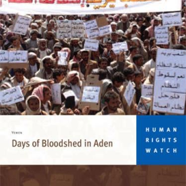 Around 1:30 p.m., army troops opened fire on tens of thousands of protesters during a funeral procession in the southern port city of Aden, killing one marcher and wounding at least 11 others, witnesses told Human Rights Watch. The marchers were mourning Ahmad al-Darwish, a Yemeni who died one year ago in police custody. Al-Darwish's family and human rights activists allege that al-Darwish was tortured to death and had refused to bury him for one year to press for an impartial investigation. Authorities released one key suspect, and investigations have stalled.