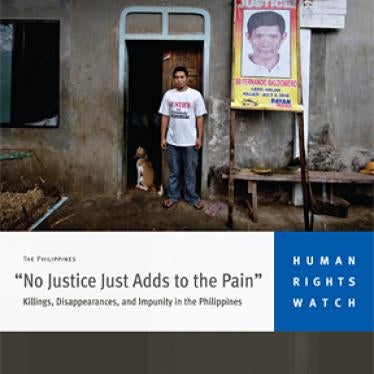 One week after Human Rights Watch published its report on impunity for torture in the US, we published a report on extrajudicial killings in the Philippines since President Aquino took office, “No Justice Just Adds to the Pain: Killings, Disappearances, and Impunity in the Philippines.” It documents seven extrajudicial killings and three enforced disappearances in which there is strong evidence of military involvement.