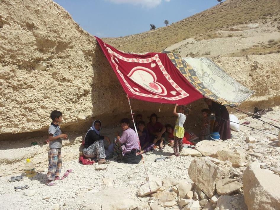 Many more Yezidis – upwards of 150,000– fled Sunday morning from Sinjar and surrounding villages into rugged mountains a dozen or so kilometers to the north. There, they found few means of sustenance or even shelter amid the mountains’ sparse vegetation - no water to speak of, and little by way of shelter from summer temperatures that can soar to 120 Fahrenheit. Perhaps as many as 40,000 managed to descend on the northern side and make their escape that same day, before ISIS surrounded the mountains.