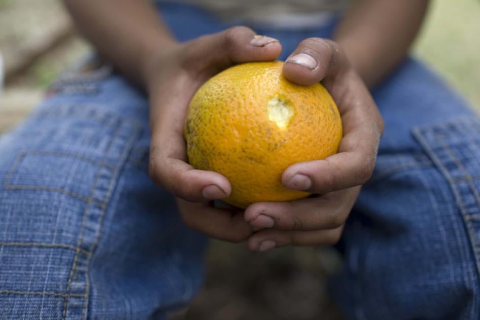 According to the New York Times, chlorpyrifos is currently used on about 50 different types of crops and on about 40,000 farms. Research has found that health risks from the chemical can persist for up to 18 days after application to crops. Many child farmworkers have told Human Rights Watch about working in fields that were still wet with pesticides or breathing in pesticide drift while nearby fields were being sprayed.