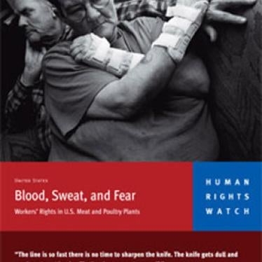 The 100-page report, “‘When We’re Dead and Buried, Our Bones Will Keep Hurting’: Workers’ Rights Under Threat in US Meat and Poultry Plants,” describes alarmingly high rates of serious injury and chronic illness among workers at chicken, hog, and cattle slaughtering and processing plants. Human Rights Watch interviewed workers who described serious job-related injuries or illnesses, and nearly all the interviewed workers identified production speed as the factor that made their job dangerous.