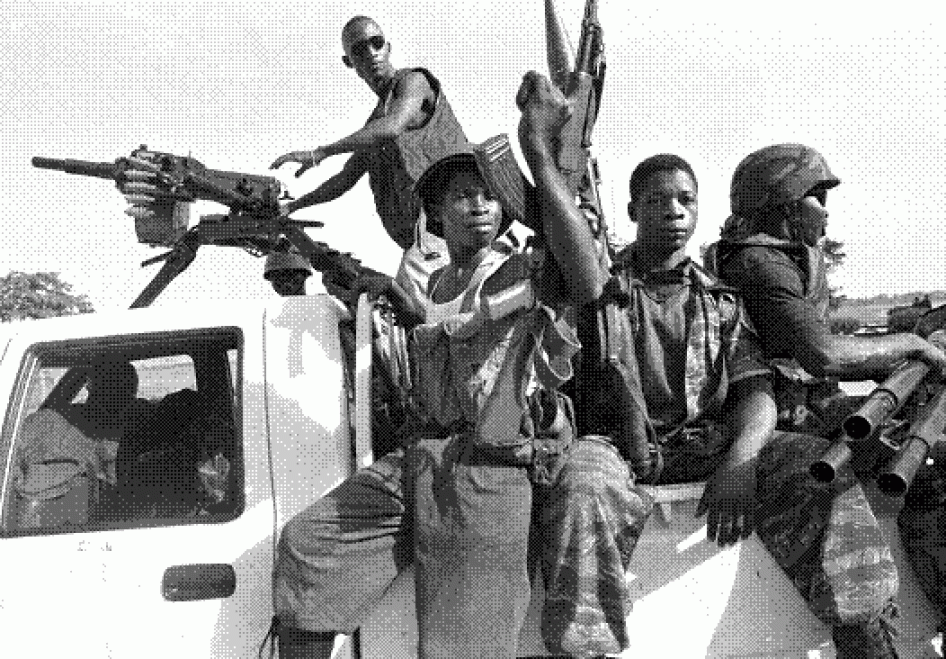 Since the late 1980's, the armed conflicts in Liberia, Sierra Leone, Guinea and Côte d'Ivoire have reverberated across each country's porous borders. Gliding back and forth across these borders is a migrant population of young fighters – regional warriors – who view war as mainly an economic opportunity. Their military 'careers' most often began when they were abducted and forcibly recruited by rebels in Liberia or Sierra Leone, usually as children.[1] Thrust into a world of brutality, physical hardship, forced labor and drug abuse, they emerged as perpetrators, willing to rape, abduct, mutilate and even kill. Later, as veteran fighters struggling to support themselves within the war-shattered economy at home, they were lured by recruiters back to the frontlines – this time of a neighbor's war. There, they took the opportunity to loot and pillage; an all too familiar means of providing for their families or enriching themselves.