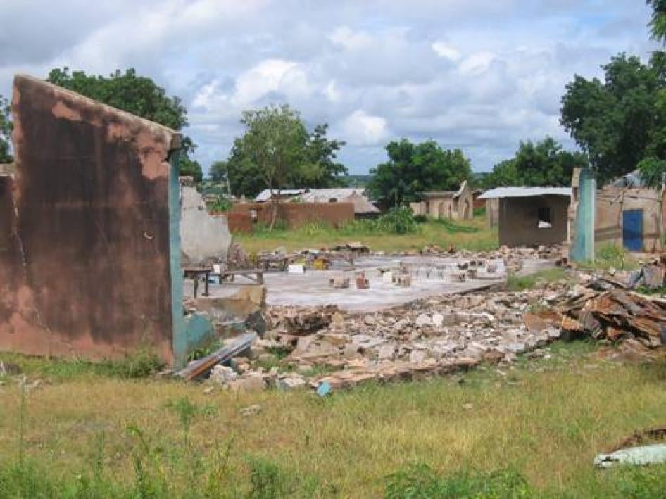 Remains of the ECWA church in Yelwa, destroyed on February 24, 2004. 2004 Human Rights Watch