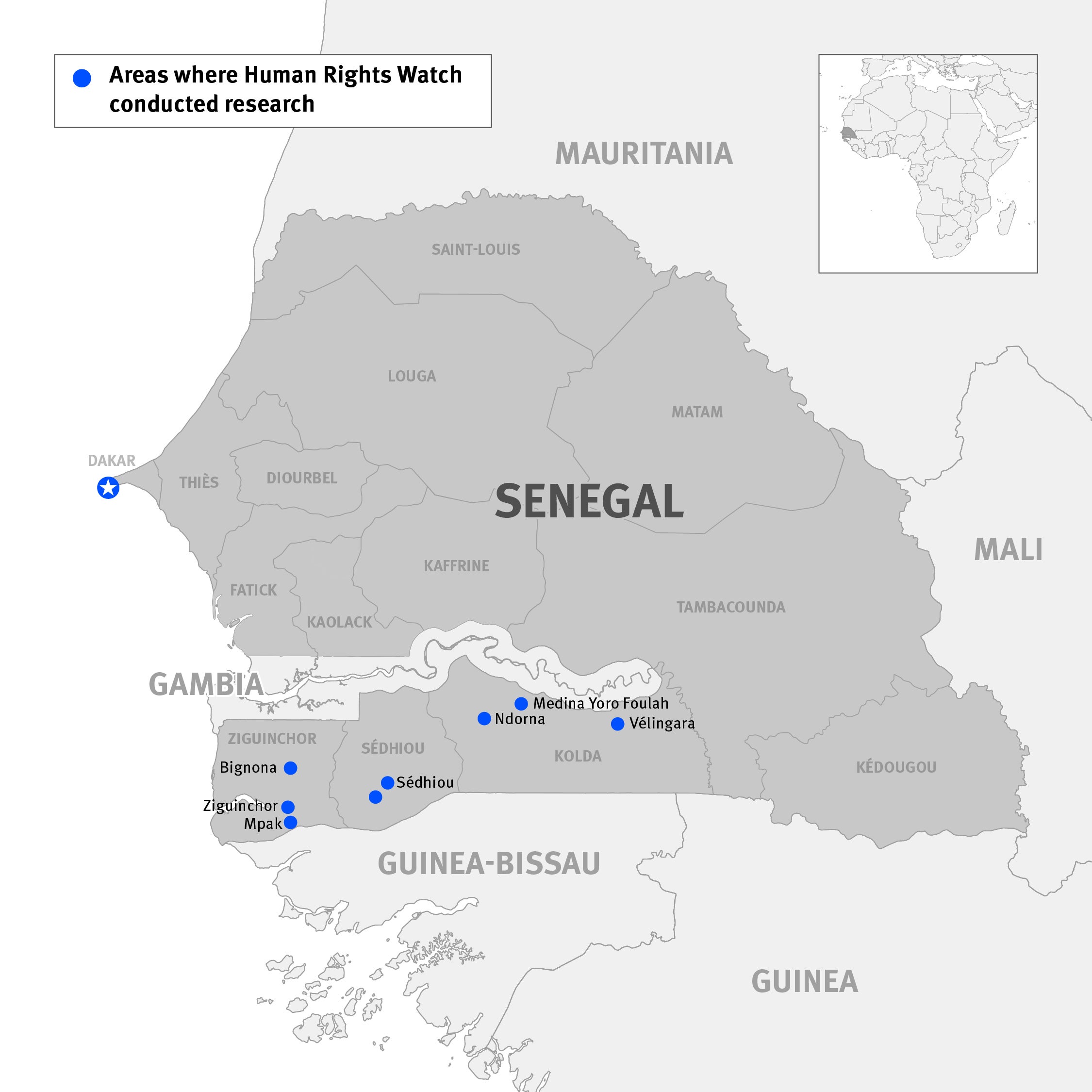 This report is based on research conducted in June, August, October and November 2017, and July 2018, in the regions of Kolda, Sédhiou and Ziguinchor, as well as in and around the capital, Dakar. Human Rights Watch chose these regions because they have some of the highest rates of teenage pregnancy in the country, as well as high levels of child marriage and low secondary school retention, according to United Nations and government figures. We also consulted local and national nongovernmental organizations (NGOs), many of whom shared information or evidence from their existing programming assisting children affected by sexual and gender-based violence in these regions.